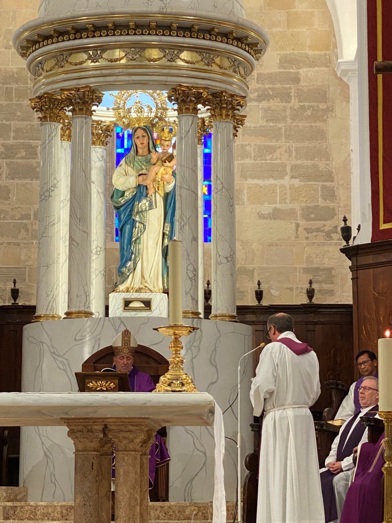 Acabada la liturgia, tomó la palabra el vicario general de la diócesis, Mons. José Martínez Franco, quien felicitó al prelado por su aniversario en la sede ibicenca y elogió su trabajo como “pastor cercano, atento a las necesidades de su pueblo, firme en la fe y lleno de esperanza”. En su intervención, dirigiéndose al obispo, agregó: “Su palabra nos orienta, su testimonio nos anima y su presencia, siempre sencilla y fraternal, nos recuerda que la misión de la Iglesia se construye con humildad y servicio”.